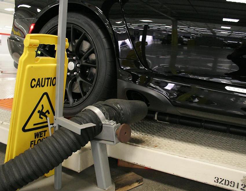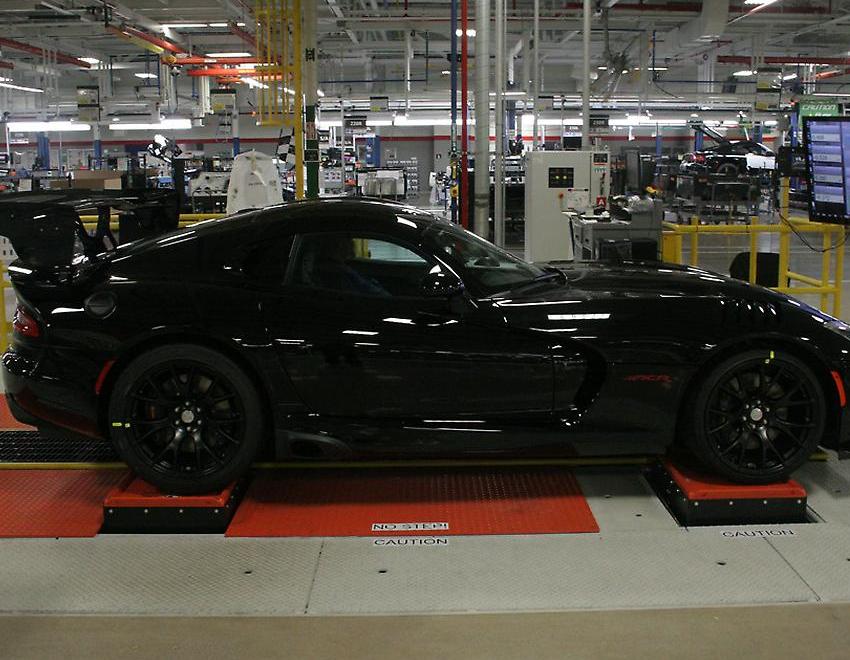 Before the Viper is deemed “ready to ship” we put it through a series of comprehensive Quality Assessments featuring a number of tests designed to confirm that all the systems work correctly. The first check includes a three-step process where the electrical and emission systems are certified and we correctly aim the headlights. Next up is the water test where we spray the Viper with over 700 gallons of water for a full five minutes to make sure there are no interior leaks. Then it goes for a “ride” on our four-post shaker rig where it is checked for any squeaks or rattles that might be in the suspension, chassis or bodywork. Next up is the ‘Gap and Flush’ cell where four robotic arms verify the body panel gaps - specifically with the front and rear fascias, liftgate, hood and doors. The final Quality station for is the ‘prep and polish’ area where it’s cleaned inside and out and put into “showroom” condition.